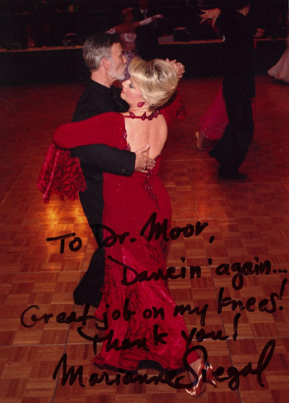 “I enthusiastically recommend Dr. Moor as a fine physician and an admirable person. He performed major surgery on me twice. The first surgery was to completely replace both knees and the second was to repair a dislocated and fractured shoulder. Dr. Moor was always honest with me. I knew from the start what the operation entailed, and he never let me doubt that the knee replacement would involve pain and require rehabilitation. More than anything, this one instance shows how caring he is: On the morning I was scheduled for surgery, I needed to be transported from the hospital to the surgery center. No one seemed to be available or want to wheel me over, so Dr. Moor just went ahead and did it himself. Both procedures were successful in giving me back use of my damaged joints. He is a top-notch surgeon and a wonderful guy. I wish all doctors were as accessible and caring.” ~ Barbara J. Lanius