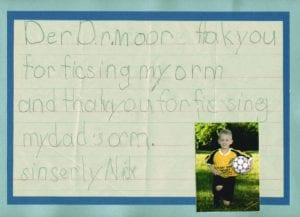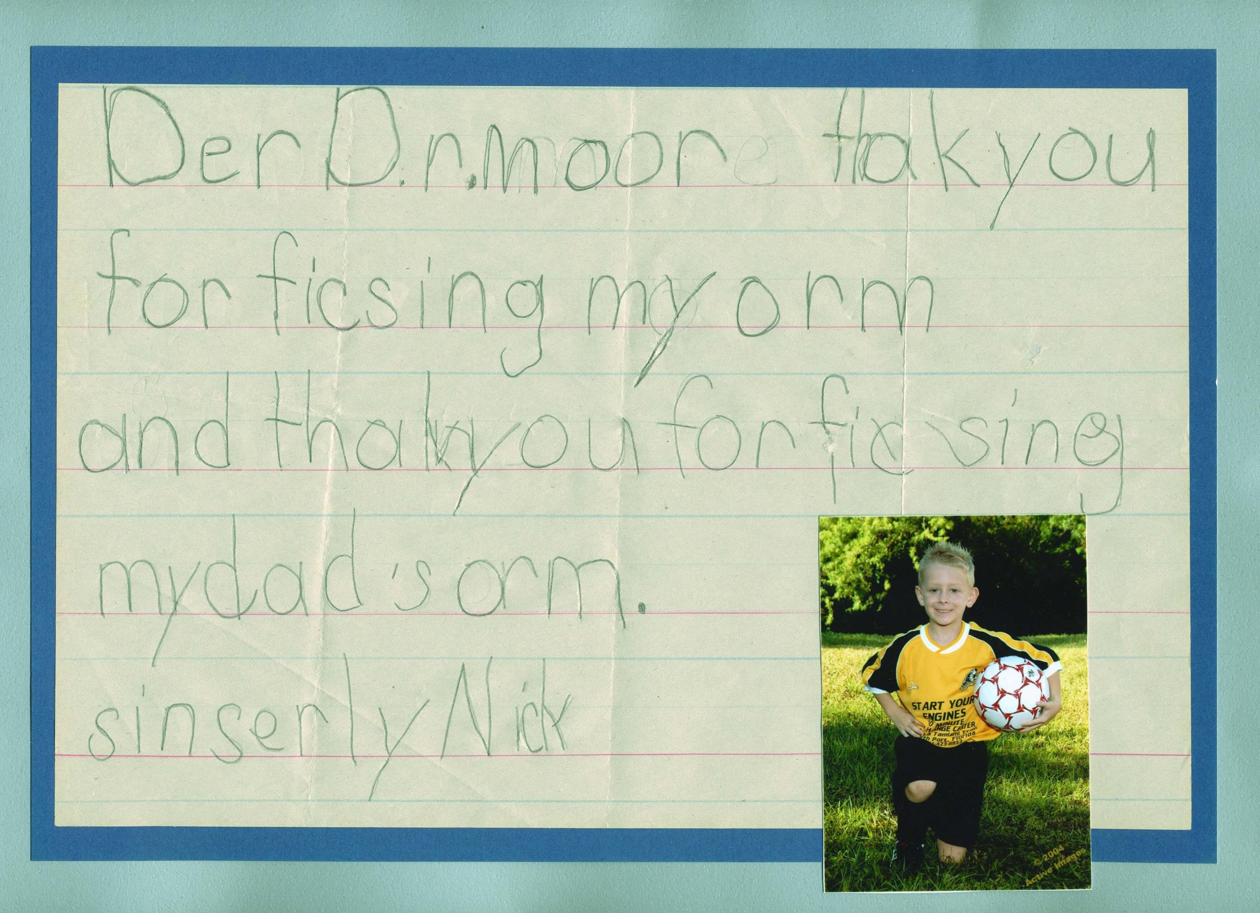 “I just want to say thank you to Dr. Moor for all the wonderful care he has given me. I fell and severely fractured my wrist. Knowing that I was widowed and living alone, he insisted on picking me up and driving me to the hospital – and that was after he’d already spent all day at the hospital performing surgery. After two surgeries and lots of encouragement from Dr. Moor, I am back to the activities I enjoy. I would also like to thank the rest of the staff at Advanced Sports Medicine Center for being pleasant and courteous to me. Thank you again!” ~ Carmen Veit